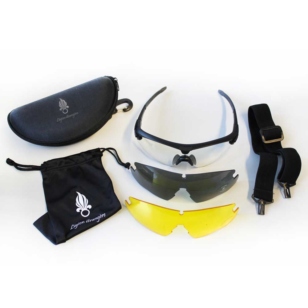 Foreign Legion shooting glasses or sports glasses are perfect for all sporting activities: archery, sports shooting, cycling, running... Their design protects your eyes and your vision from dust, pollen, impacts , brightness... The protective glasses for shooting meet EN166FT and ANSI Z87.1 standards. They are delivered with 3 removable faces: